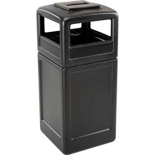 PolyTec Square Waste Container with Ashtray Lid, Black, 42-Gallon