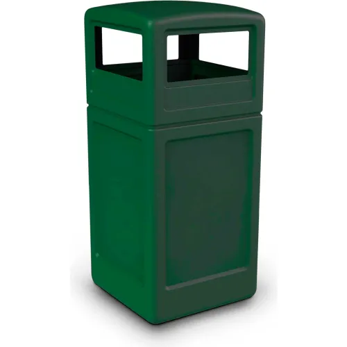 PolyTec Square Waste Container with Dome Lid, Green, 42-Gallon
