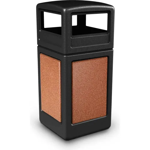 PolyTec Square Waste Container with Dome Lid - Black with Sedona Stone Panels, 42-Gallon