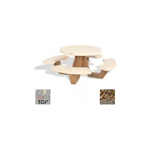 42" Round Picnic Table, Concrete, Gray Top/Tan Frame