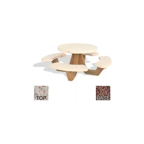 42" Round Picnic Table, Concrete, White Top/Red Frame
