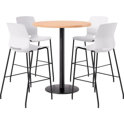 KFI 42" Round Table with 4 Imme Armless Barstools, White Seat/Maple Top