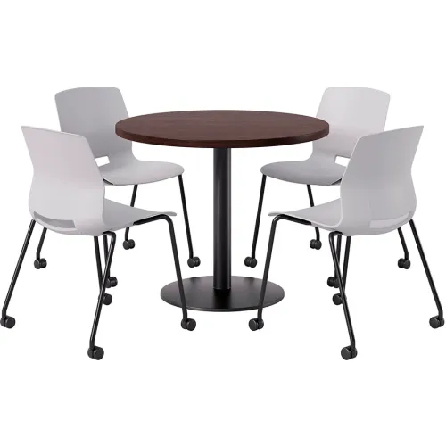 KFI 42" Round Table with 4 Imme Armless Caster Chairs, Light Gray Seat/Espresso Top