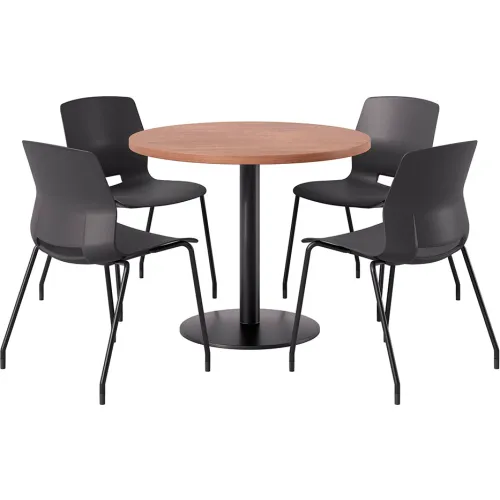 KFI 42" Round Table with 4 Imme Armless Chairs, Black Seat/River Cherry Top