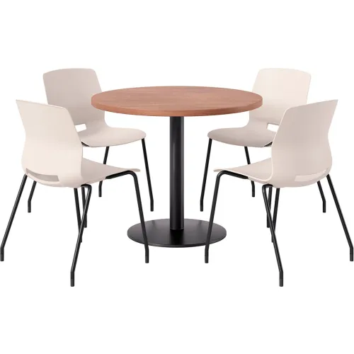 KFI 42" Round Table with 4 Imme Armless Chairs, Moonbeam Seat/River Cherry Top