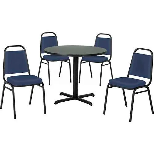 Premier Hospitality 42" Round Table & Stack Chair Set, Gray Table/Blue Chairs