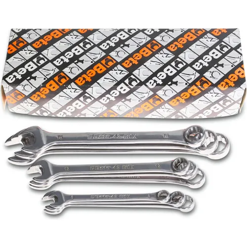 Beta 42INOX 9 Piece 1/4" to 3/4" 12-Point 15° Offset Combination Wrench Set, Silver