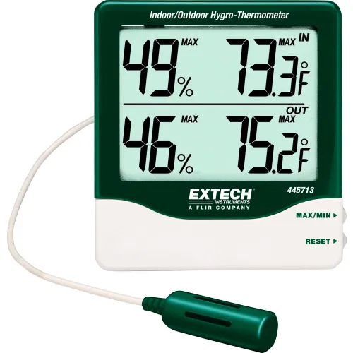 Extech 445713 Big Digit Indoor/Outdoor Hygro-Thermometer, Silver/Green