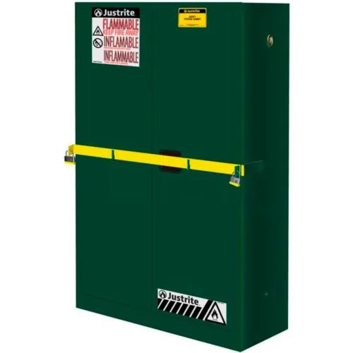 Justrite 45 Gallon 2 Door, Manual, High Security Pesticide Cabinet, 43"W x 18"D x 65"H, Green