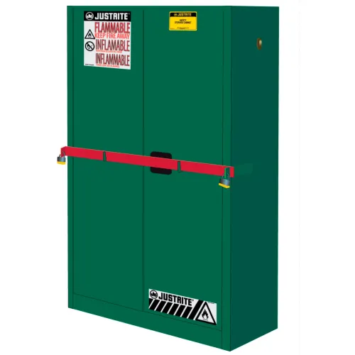 Justrite 45 Gallon 2 Door, Self-Close, High Security Pesticide Cabinet, 43"W x 18"D x 65"H, Green