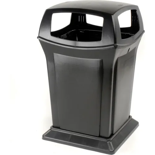 Rubbermaid® Ranger® Plastic Square Trash Can, 4 Openings, 45 Gallon, Black