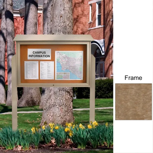 United Visual 45"W x 30"H Cork Top-Hinged Single Door Message Center with Weathered Wood Frame
