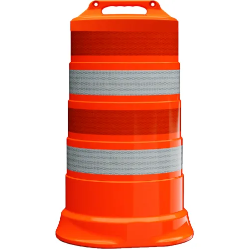 Plasticade Commander Traffic Drum, Orange, Diamond Grade Sheeting, 4 6'' Reflective Stripes, LDPE