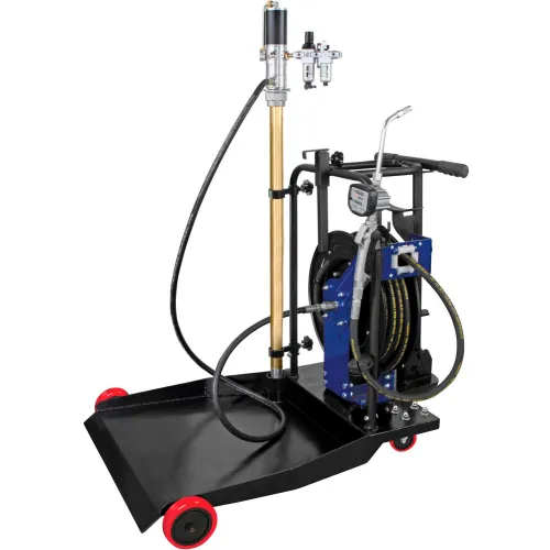 Prolube 45836 Trolley Mounted Oil Pump Kit, Air Operated Pump, Hose Reel & Digital Oil Control Gun