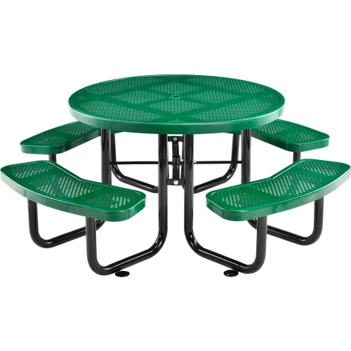 Global Industrial 46" Round Picnic Table, Perforated Metal, Green