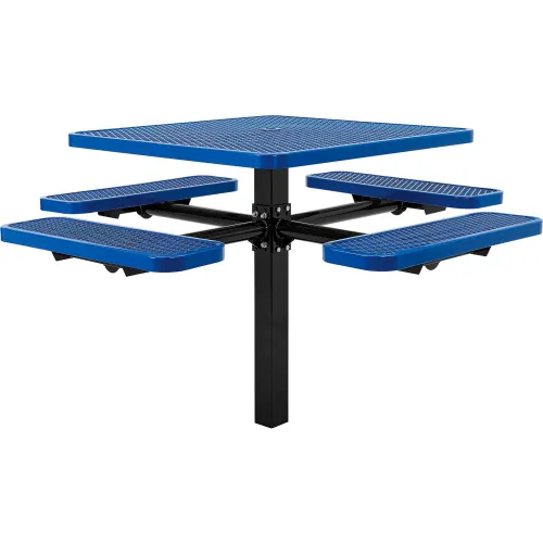 Global Industrial 46" Square Picnic Table, In Ground Mount, Expanded Metal, Blue