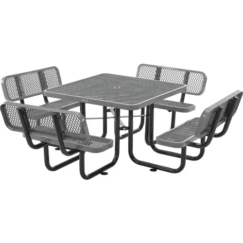 Global Industrial 46" Square Picnic Table with Backrests, Expanded Metal, Gray