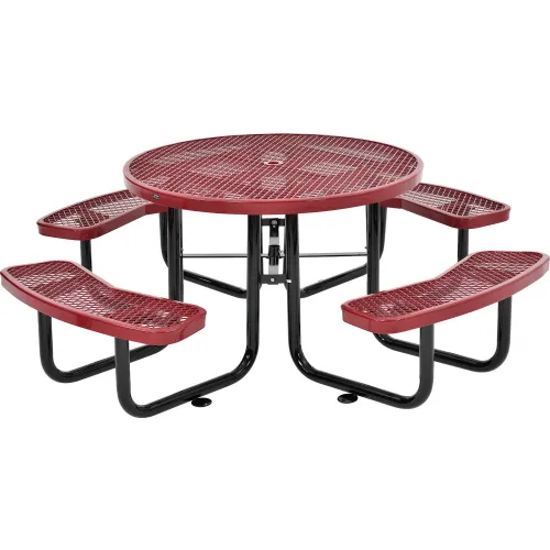 Global Industrial 46" Round Picnic Table, Expanded Metal, Red