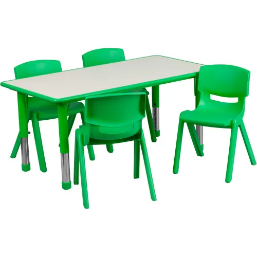 Flash Furniture 47.25" Rectangle Plastic Height Adjustable Activity Table Set with 4 Chairs - Green