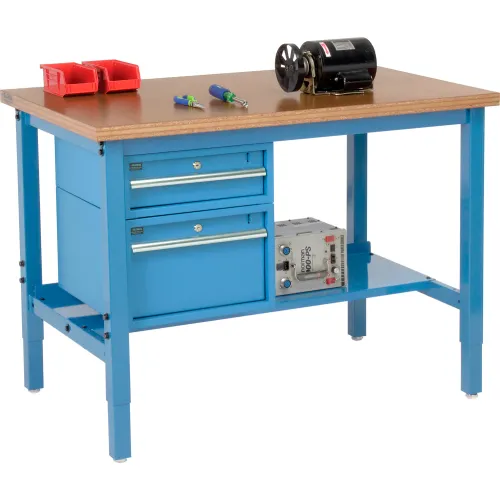 Global Industrial 48 x 30 Production Workbench - Shop Top Square Edge - Drawers & Shelf - Blue