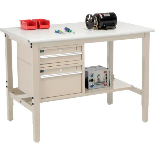 Global Industrial 48"W x 36"D Production Workbench - ESD Safety Edge - Drawers & Shelf - Tan