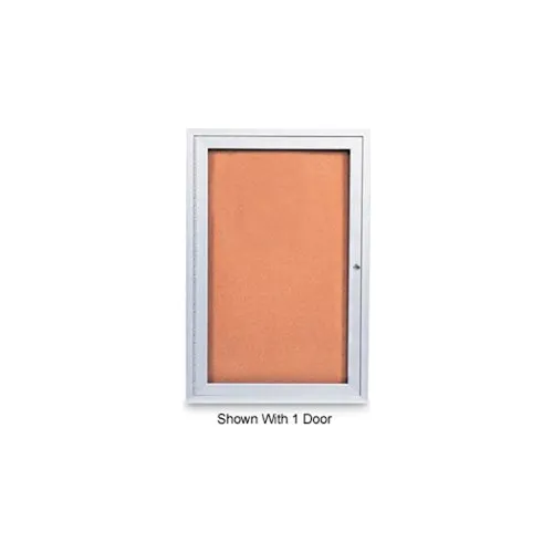 United Visual Products 48"W x 36"H 2-Door Outdoor Enclosed Corkboard with Satin Aluminum Frame