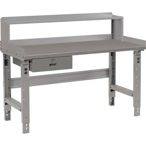 Global Industrial Workbench w/ Steel Square Edge Top, Drawer & Riser, 48"W x 36"D, Gray