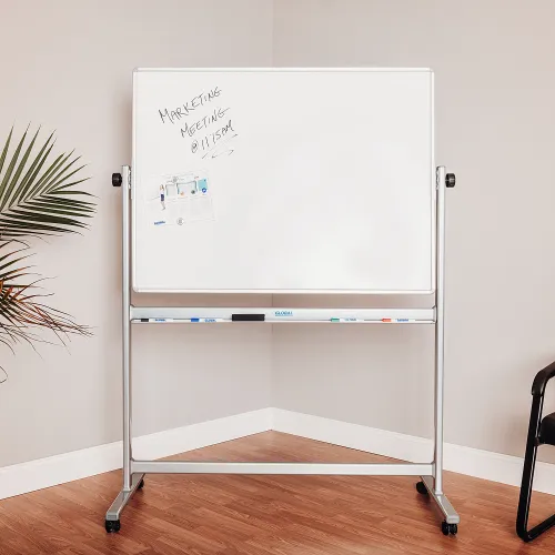 Global Industrial Mobile Reversible Magnetic Whiteboard - 48"W x 36"H - Steel - Silver Frame
