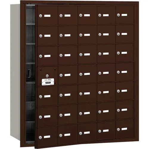 4B+ Horizontal Mailbox, 35 A Doors (34 usable), Front Loading, Bronze, USPS Access