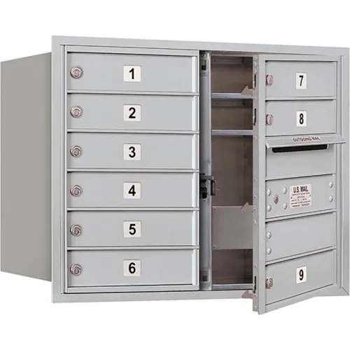 4C Horizontal Mailbox, 23-1/2"H, Double Column, 9 MB1 Doors, Front Load, Aluminum, USPS