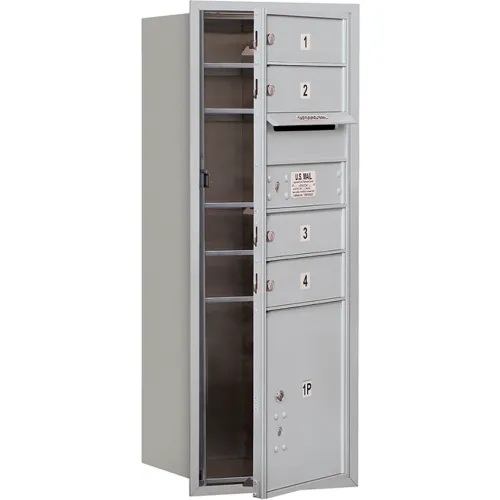 4C Horizontal Mailbox, 37-1/2"H, Single, 4 MB1/1 PL Doors, Front Load, Aluminum, USPS