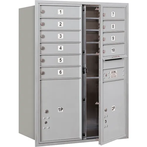 4C Horizontal Mailbox, 41"H, Double Column, 10 MB1/2 PL5 Doors, Front Load, Aluminum, USPS