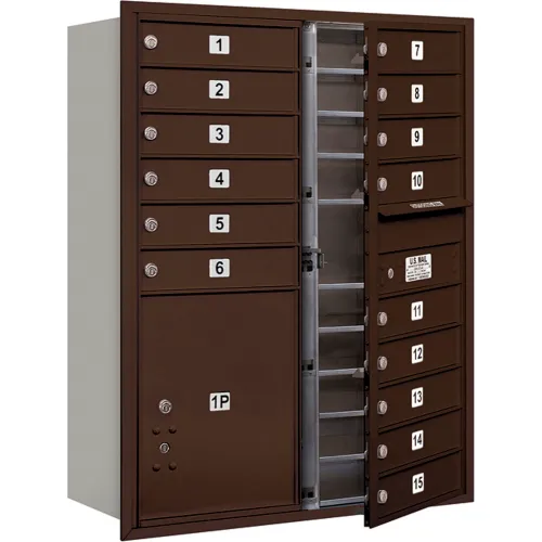 4C Horizontal Mailbox, 41"H, Double Column, 15 MB1/1 PL5 Door, Front Load, Bronze, USPS