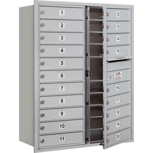 4C Horizontal Mailbox, 41"H, Double Column, 20 MB1 Doors, Front Load, Aluminum, USPS