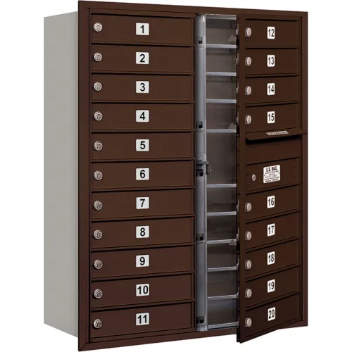 4C Horizontal Mailbox, 41"H, Double Column, 20 MB1 Doors, Front Load, Bronze, USPS