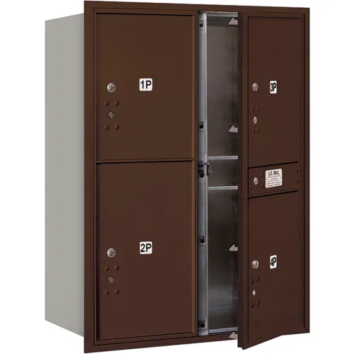 4C Horizontal Mailbox, 41"H, Double,Parcel Box, 3 PL5/1 PL6 Doors, Front Load, Bronze, USPS