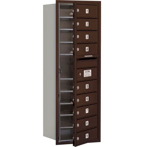 4C Horizontal Mailbox, 41"H, Single Column, 9 MB1 Doors, Front Load, Bronze, USPS