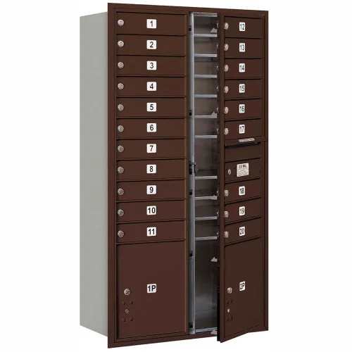 4C Horizontal Mailbox, 56-3/4"H, Double Column, 20 MB1/2 PL Doors, Front Load, Bronze, USPS