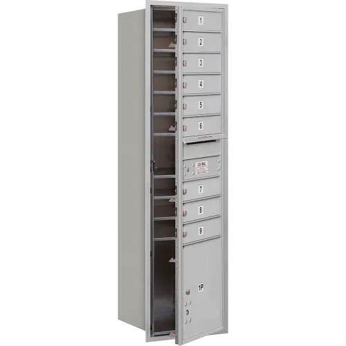 4C Horizontal Mailbox, 56-3/4"H, Single, 9 MB1/1 PL Doors, Front Load, Aluminum, USPS