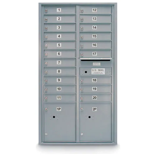 United Visual Products 4C Horizontal Mailbox N1029415 56-1/2"H Double Column 20 Doors, 2 Parcel USPS