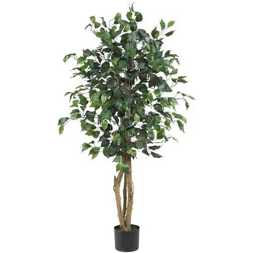 Nearly Natural 4' Ficus Silk Tree with Round Pot, Green