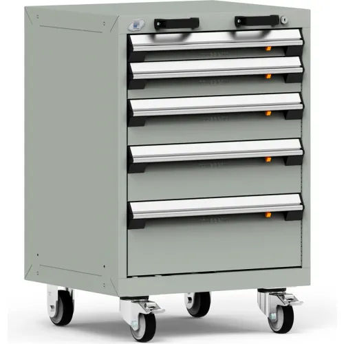 Rousseau Metal® R5BCD-3053KD-071 Heavy Duty Modular Mobile Cabinet, 5 Drawers, Light Gray