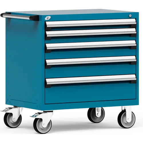 Rousseau Metal® R5BEE-3003KD-051 Heavy Duty Modular Mobile Cabinet, 5 Drawers, Everest Blue