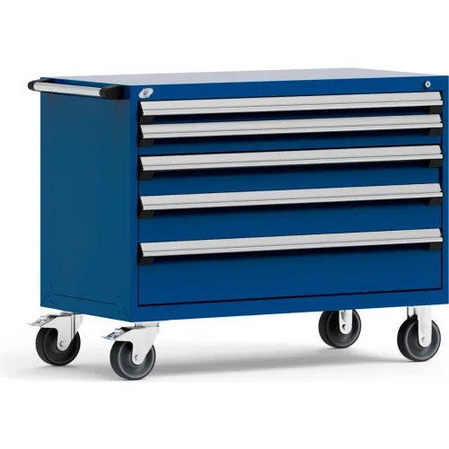 Rousseau Metal® R5BHE-3003KD-055 Heavy Duty Modular Mobile Cabinet, 5 Drawers, Avalanche Blue