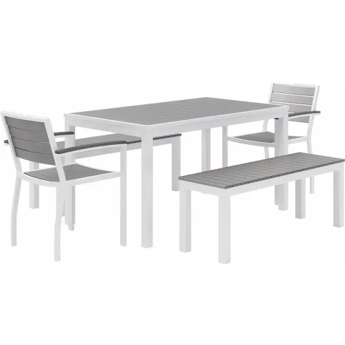KFI Seating 5 Piece Outdoor Dining Set, Gray w/ White Frame