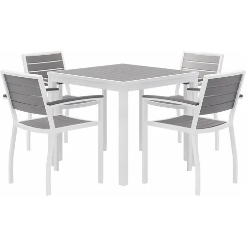KFI 5 Piece Outdoor Dining Set, Gray w/ White Frame