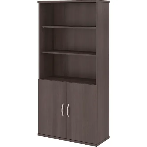 Bush Furniture 5-Shelf Bookcase with Doors - Storm Gray - Studio C Series