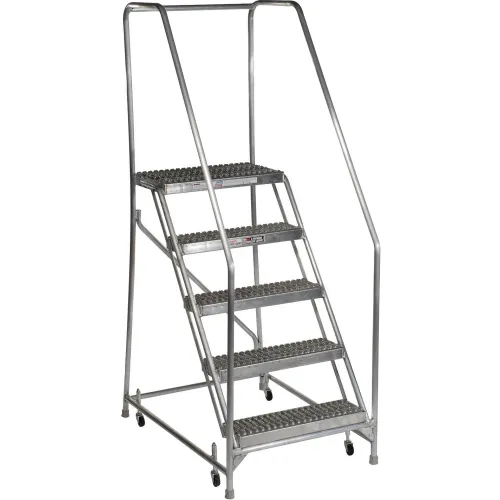 5 Step Aluminum Rolling Ladder, 24"W Grip Step, 30" Handrails - WLAR105245