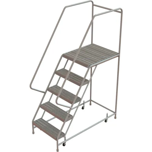 5 Step Aluminum Rolling Ladder, 24"W Grip Tread, 21"D Top Step - WLAR105245-D4C