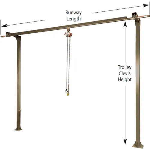 500 lb. Capacity, Spanco, Monorail System, 12' Runway Length, 10' Trolley Clevis Height, 2 Columns
